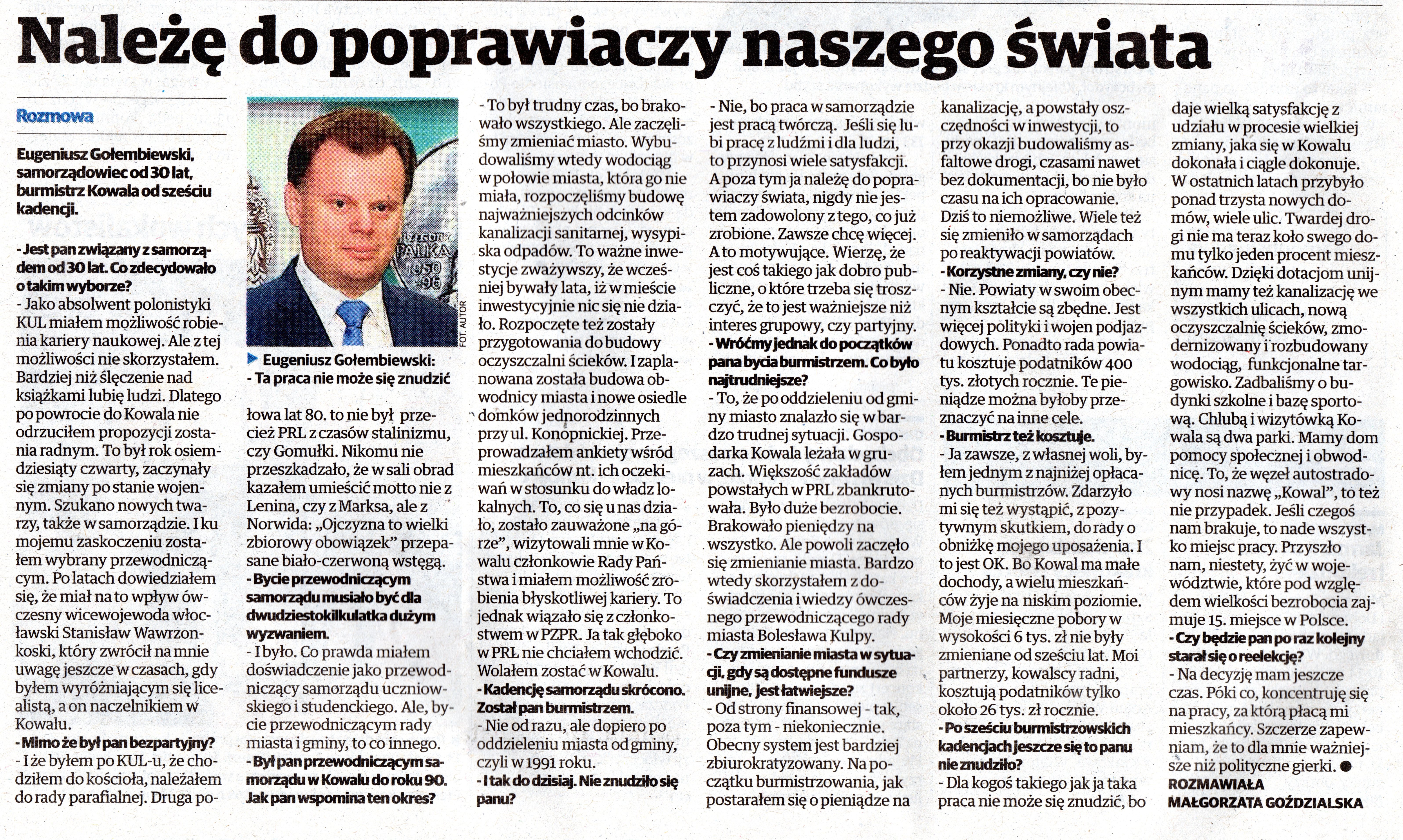 przez Gazetę Pomorską o udzielenie wywiadu, który ukazał się w wydaniu Gazety